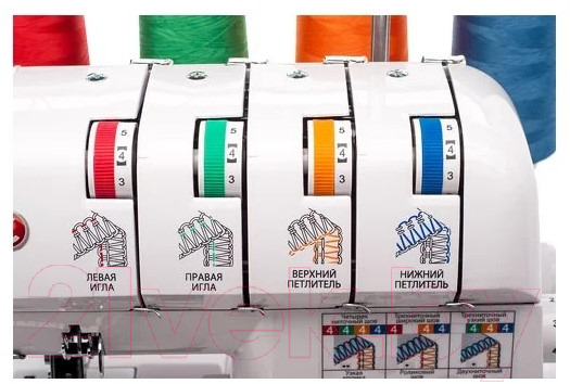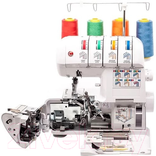 | Дополнительная комплектация | гаечный ключ, комплект игл, конвертер, направляющая для шнура, отвертка, педаль, пинцет, подставки под катушки, сетки для катушек, стежковый язычок |