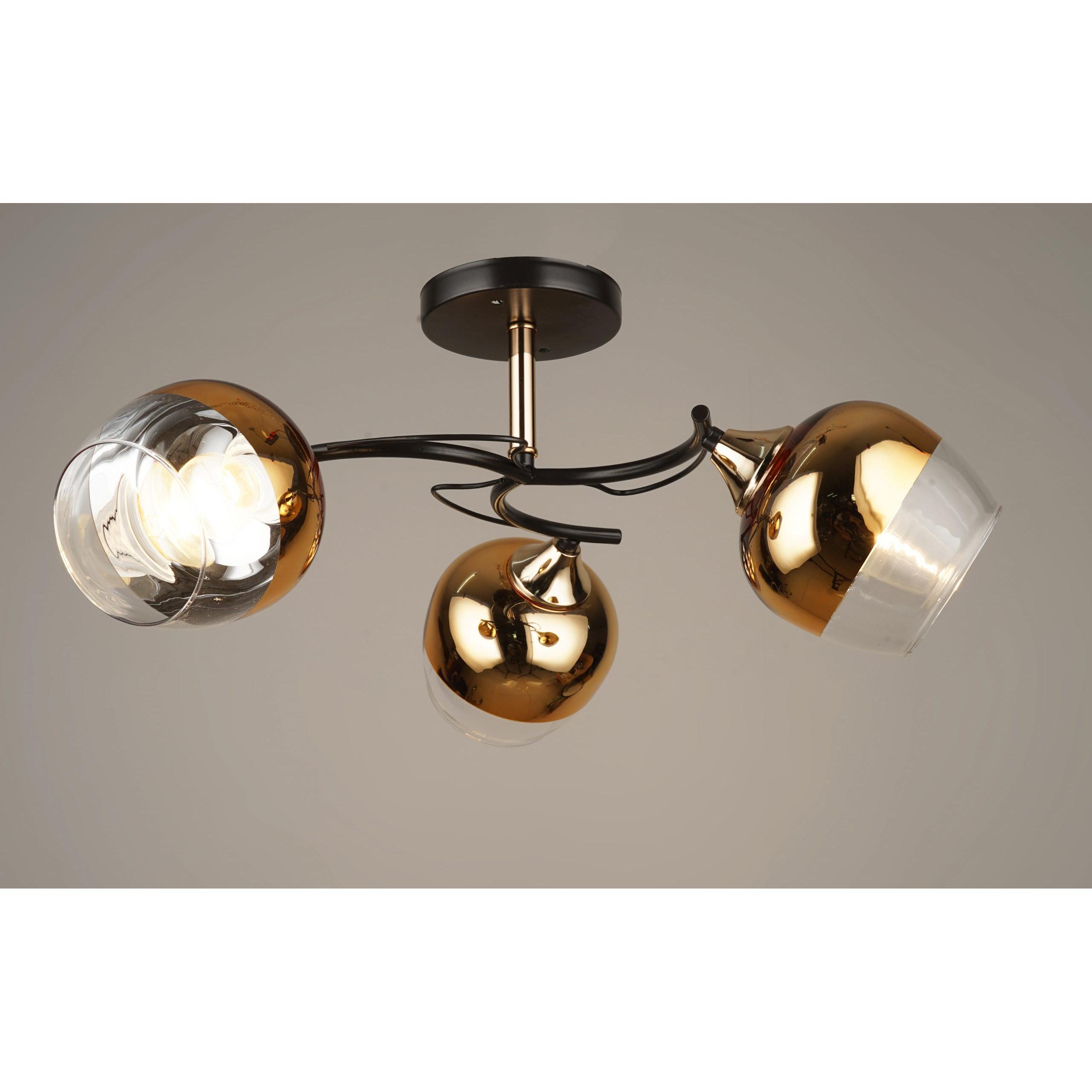 Светильник предназначен для освещения жилых помещений. Основание – металл. Плафоны – стекло. Цвет – черный / золото. Тип патрона – Е27.