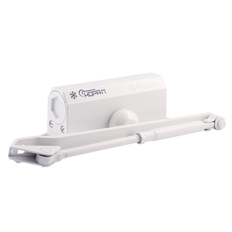Доводчик для плавного закрывания дверей и калиток весом от 50 до 80 кг. Универсальный, морозостойкий, работает при температурах от -45 до +60?С. Скорость закрывания и скорость дохлопа регулируется индивидуально, при установке. Угол открытия двери может меняться от 90? (при ширине дверного полотна 1100 мм и его весе 80 кг) до 180? (при ширине 950 мм и весе 60 кг).