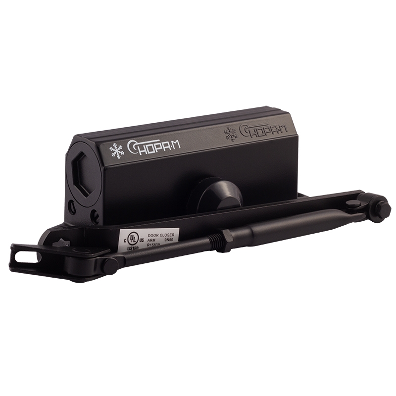 Доводчик для плавного закрывания дверей и калиток весом от 50 до 80 кг. Универсальный, морозостойкий, работает при температурах от -45 до +60?С. Скорость закрывания и скорость дохлопа регулируется индивидуально, при установке. Рекомендуется для дверей, не требующих открывания на 180? (например, в тех случаях, когда открывание ограничено стеной). Для увеличения угла открывания двери до 180? корпус доводчика крепится на короб двери с противоположной стороны от петель.
