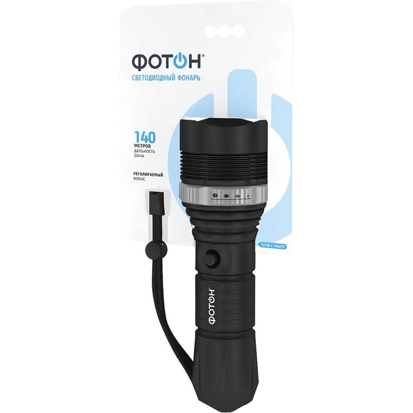 Фонарь с регулируемым фокусом, обладает повышенным временем автономной работы на одном комплекте батареек. Дальность освещения 140м. Питание от 3xLR6 (в комплекте).