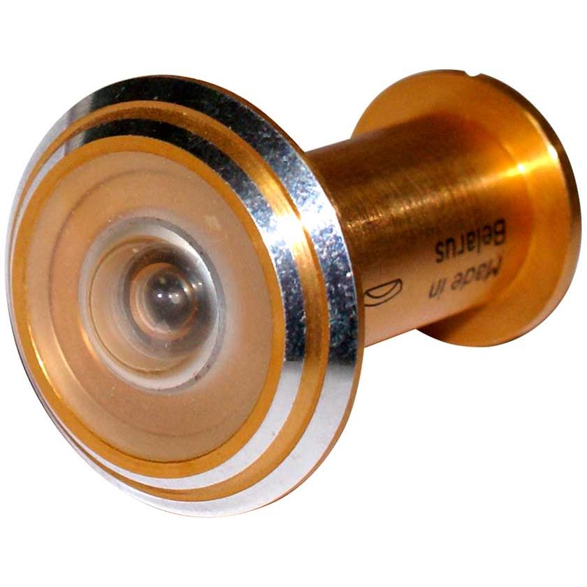 Глазок широкоугольный с заслонкой ГДШ-200 артикул 7489-27 представляет собой устройство, с помощью которого можно, не открывая входную дверь, осмотреть лестничную площадку. Предназначен для установки в дверь с толщиной полотна 50-60 мм. Угол обзора данной модели составляет от 105 до 160 градусов. Линза изготовлена из высококачественной пластмассы, которая устойчива к истираниям, сколам и другим механическим повреждениям. Корпус выполнен в оттенок под золото.