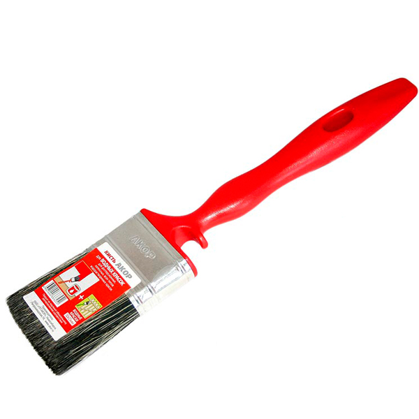 Кисть КФ 50х15 мм Водные краски флейцевая изготовлена из смеси натуральной и искусственной щетины. Подходит для всех покрасочных работ с ЛКМ на водной основе. При нанесении краски не оставляет ворсинок, хорошо прокрашивает, удобна в труднодоступных местах. Специальные отверстия позволяют зафиксировать кисть в перерывах, не боясь падения и загрязнения поверхности.