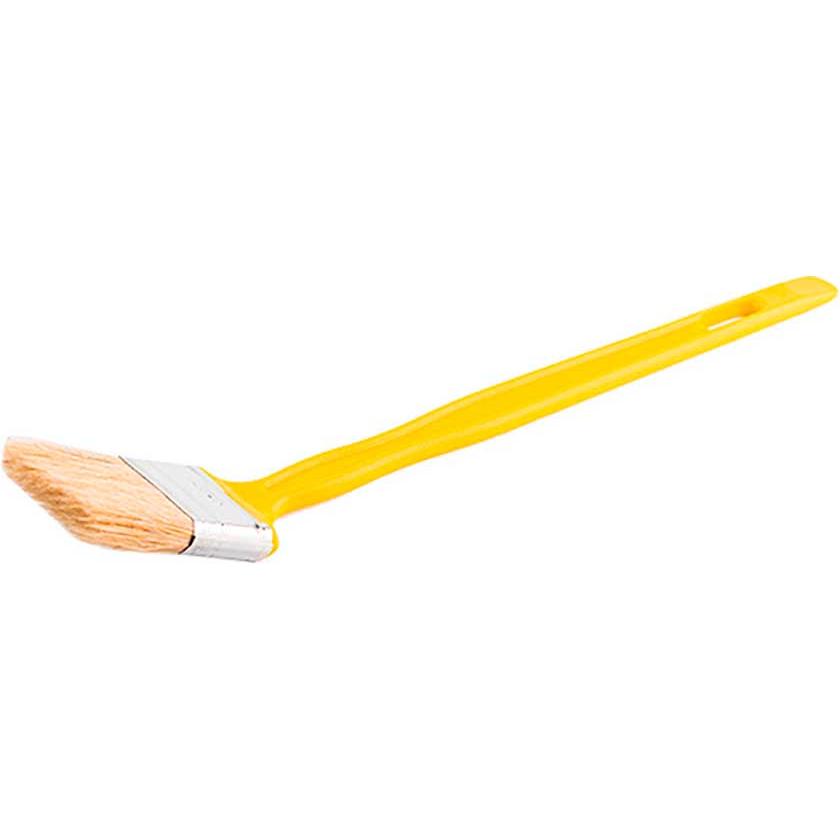 Кисть радиаторная КФР Эксперт 25х10. Применяется для малярных работ. Кисть флейцевая радиаторная, удлиненная желтая пластмассовая ручка L ручки – 250мм, светлая натуральная щетина.