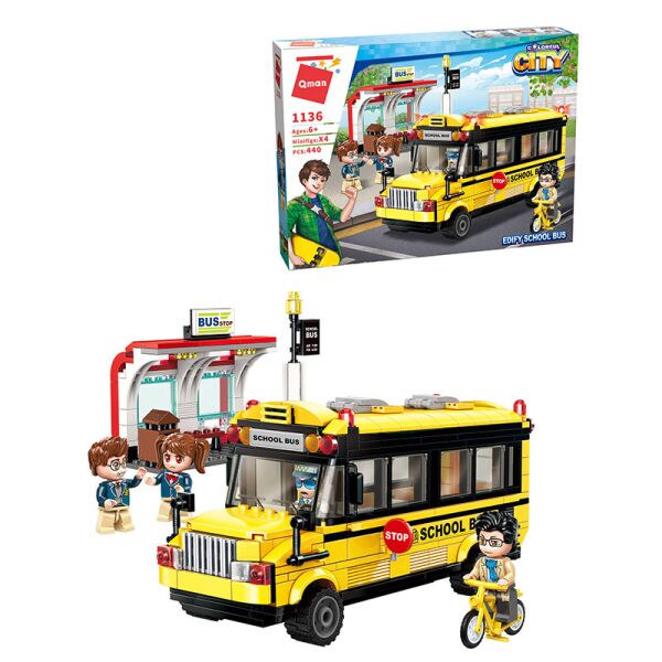 Бесплатная доставка Конструктор QMAN City 1136 Школьный автобус