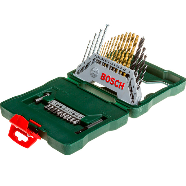 Набор оснастки BOSCH X-Line артикул 2607019324 представляет собой комплект сменных универсальных инструментов для дрели и шуруповерта. Состоит из 30 предметов и включает в себя 11 сверл по металлу диаметром от 1,5 до 6,5 мм, 4 сверла по камню и по древесине разного диаметра, 10 различных насадок-бит, а также магнитный держатель и зенкер. В комплекте предусмотрен пластиковый кейс-чемоданчик, который обеспечит удобство хранения и транспортировки, а также постоянную обзорность содержимого без возможности потерять какой-либо предмет.