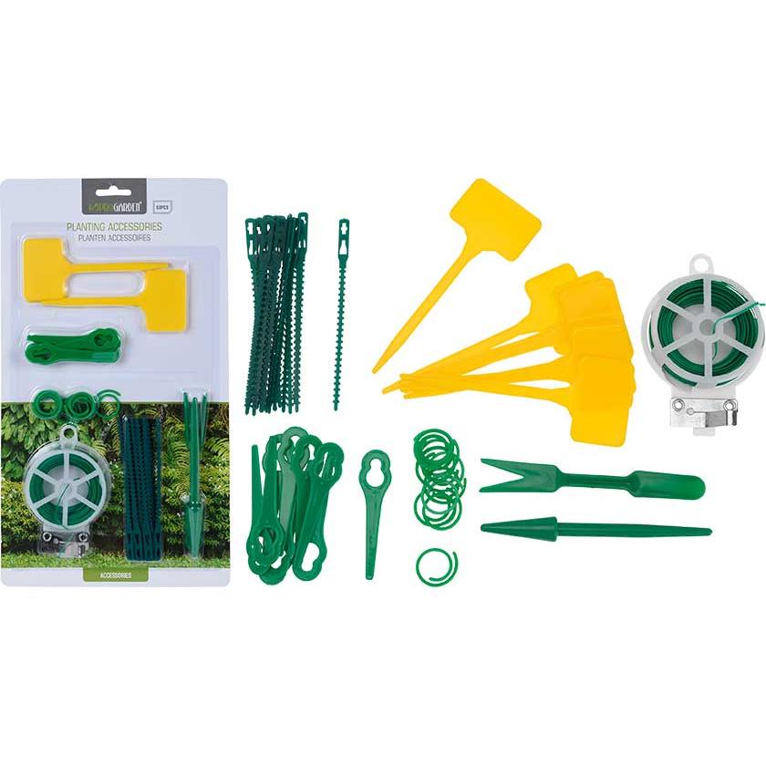 Набор садовых аксессуаров Progarden CY5910110 предназначен для фиксации побегов в нужном положении, а также для подвязки растений. Выполнен из износоустойчивого полипропилена. Удерживает растения при больших плодах, помогает росточкам расти без изгибов. В комплекте поставки предусмотрена бечевка 20 м для вьющихся культур и таблички для маркировки рассады. В наборе – 53 предмета.