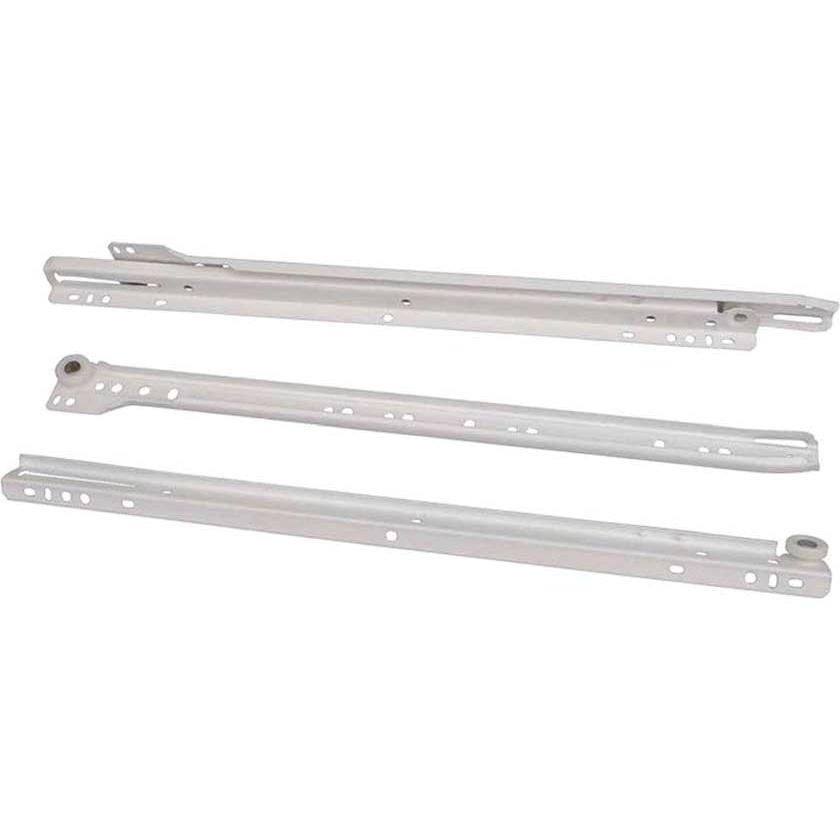 Роликовая направляющая L-550 мм – мебельная фурнитура, которая используется для монтажа выдвижных ящиков. Выдвижной механизм одинарный, неполного выдвижения. Прикручиваются с помощью шурупов или саморезов. Цельный ролик обеспечивает плавное и тихое открывание и закрывание. Надежная металлическая конструкция гарантирует большую прочность и длительный срок службы направляющей. Цвет — белый. Динамическая нагрузка до 15 кг.