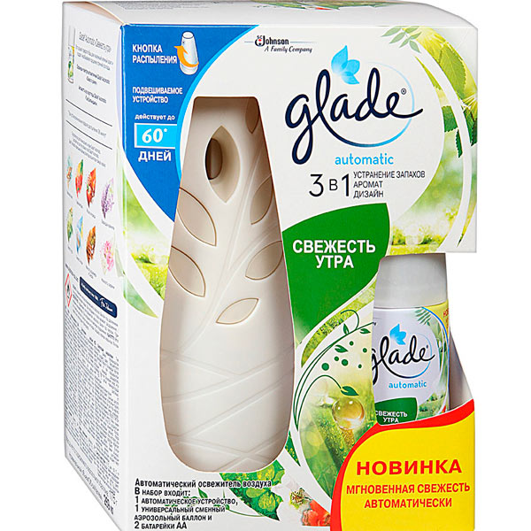 В корзину Купить Купить в кредит, рассрочку Подробнее Найти дешевлеКредит и рассрочка на Освежитель воздуха GLADE Automatic Декор свежесть утра, 175мл