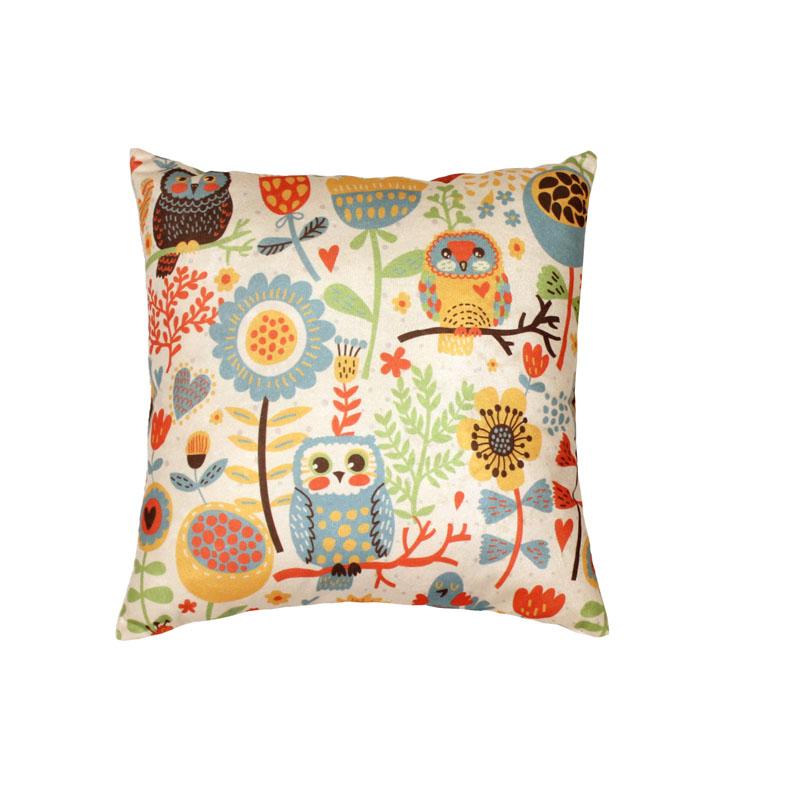 Бесплатная доставка Подушка декоративная Совы в цветах,35*35*15,молочный,коричневый,арт.08-941