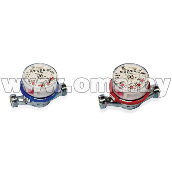 Одноструйный сухоходный счетчик холодной воды для установки в квартирах. В комплекте со штуцером, прокладкой и фильтром.