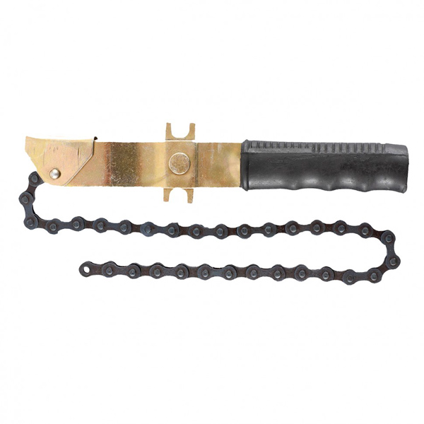 Съемник масляного фильтра Sparta 528205 чаще всего используется в работе автомастерских. Резиновая рукоятка предотвращает скольжение инструмента в руке и выполняет функцию рычага, а цепь является рабочей частью инструмента. Цепь выполнена из стали.