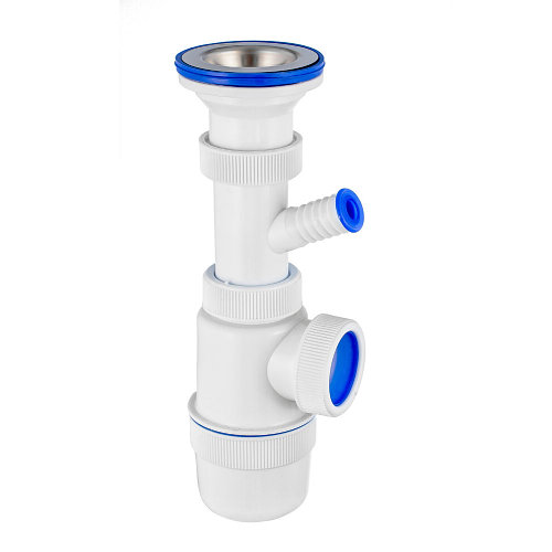 Предназначен для отвода сточных вод из эмалированных и нержавеющих моек, а также чугунных и фаянсовых раковин с переливом или без.
