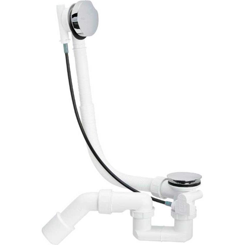 Пластмасовый сифон автомат для стандартных ванн и глубоких душевых поддонов с гибкой трубой перелива, с отводом 45°, хромированные розетка и клапан, 40/50 x 540