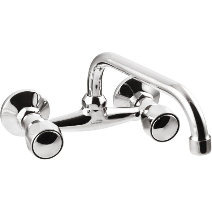 Смеситель настенный для умывальника/мойки Modena (Invena арт.BC-15-F0S). Применяется для установки на умывальники в ванных комнатах. Смеситель настенный для умывальника или мойки двухрычажный, настенный, длина излива 25 см. Цвет – хром.