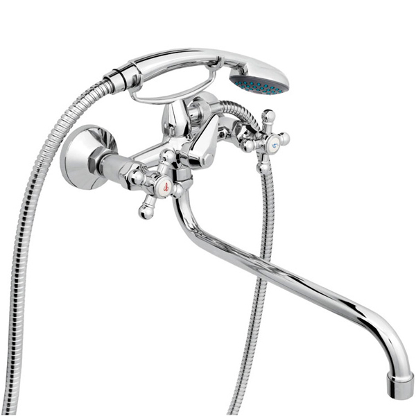 Смеситель для ванны Rubineta Rubin Ceramic C-1 Cross монтируется на стену в ванной комнате. Оснащен поворотным изливом размером 300 мм. Изделие выполнено из высококачественной латуни с хромированным покрытием, за счет чего является устойчивым к царапинам, известковому налету и ржавчине. Ручки Gross позволяют легко регулировать температуру, расход и силу потока воды. Благодаря надежным комплектующим гарантируется исправная работа смесителя на протяжении всего срока эксплуатации. В комплекте: керамические кранбуксы 1/2, душевая лейка и сетка Kobra, металлический шланг Con/Imp длиной 150 см.