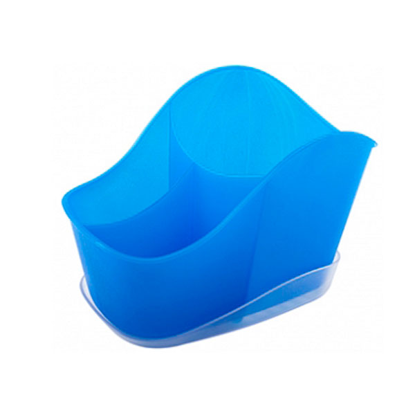 Сушилка Teo предназначена для хранения столовых приборов. Решетка, установленная на дно подставки, собирает лишнюю воду, не позволяя развиваться бактериям, плесени и грибку. Подставка из трех отсеков предполагает раздельное хранение столовых приборов. Позволяет удобно организовать рабочее пространство на кухне и сохранить чистоту. Лоток выполнен из качественного пластика, который отличается своей легкостью и прочностью. Цвет — голубой (джинс).