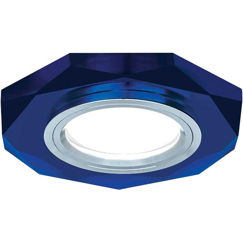 Для освещения в жилых и офисных помещениях. Тип цоколя GU5.3. Диаметр выреза для монтажа 65мм. IP 20. Цвет плафона: синий. Материал: стекло, металл. Поверхность арматуры: глянцевый хром.