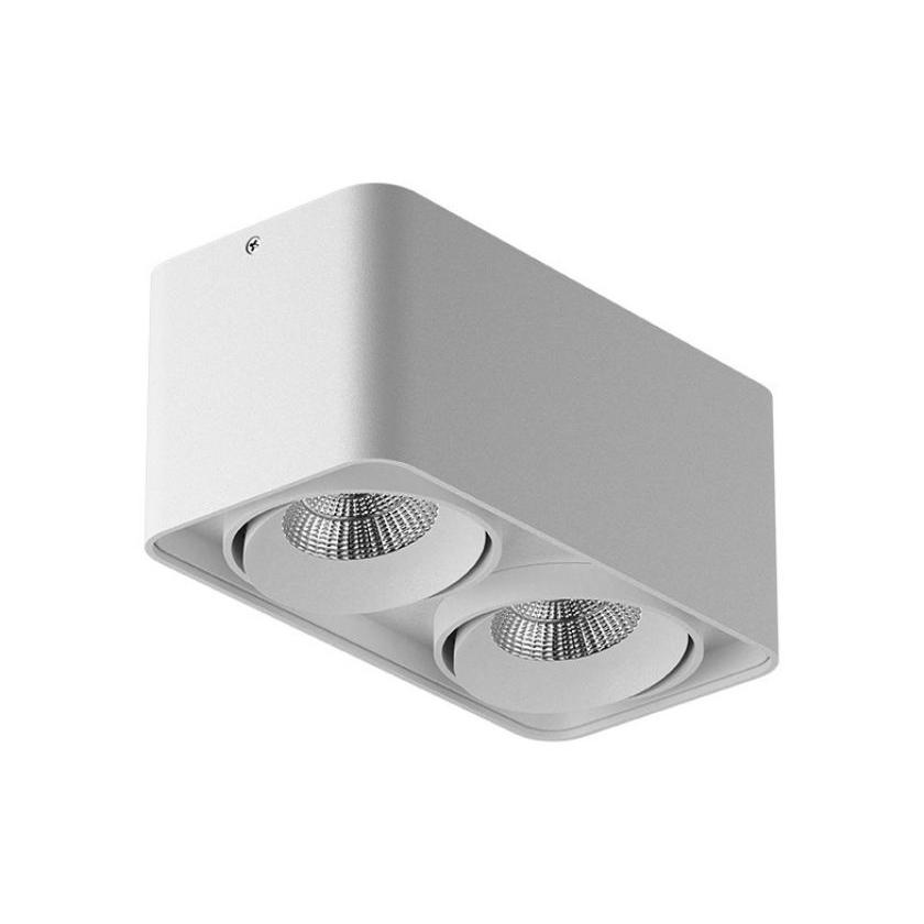 Светильник точечный накладной декоративный под заменяемые GU10 галогенные или LED лампы. 2 лампы. Стиль – хай-тек, материал – плафона металл, цвета плафона – белый.