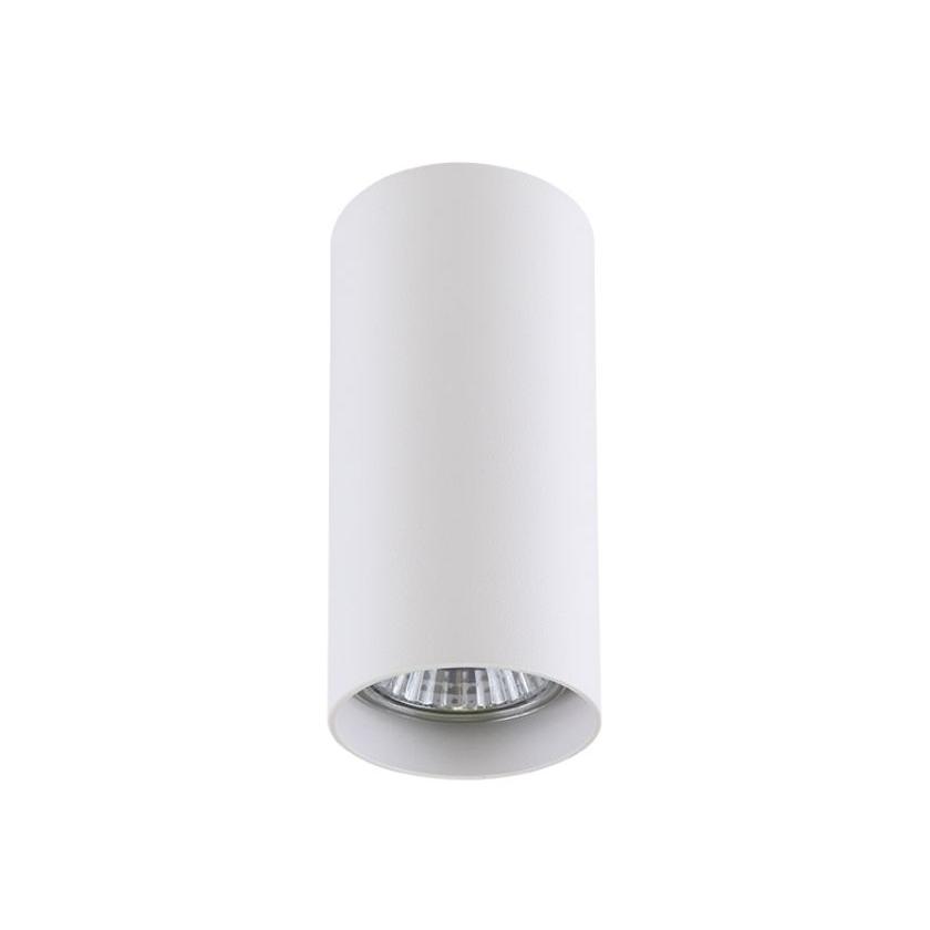 Светильник точечный накладной декоративный под заменяемые GU10 галогенные или LED лампы. Стиль – хай-тек, материал – плафона металл, цвета плафона – белый.