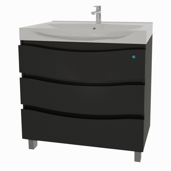 Тумба под умывальник 85 Фиджи 61.01 (9) устанавливается в ванную комнату. Боковые стенки выполнены из влагостойкого ламинированного ДСП, окрашенного высокоглянцевой черной эмалью. Модель оснащена 3 выдвижными ящиками. Поверхность устойчива к механическим повреждениям и резким перепадам температур. Многофункциональная тумба подходит для хранения полотенец, чистящих и моющих средств. К тумбе подойдет умывальник Элвис 850, в комплект поставки не входит. Размеры изделия составляют 830х700х392 мм.