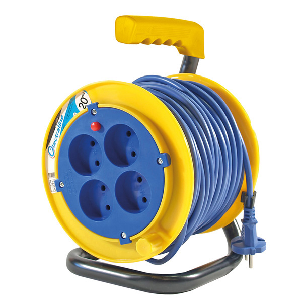 Удлинитель на пластмассовой катушке Electraline 49009 применяется для подключения электрических приборов вдали от розеток. 4 гнезда выдерживают нагрузку 6А. Гибкий провод ПВС длиной 20 м легко наматывается на катушку. Модель оснащена защитой от детей и перегрузки.