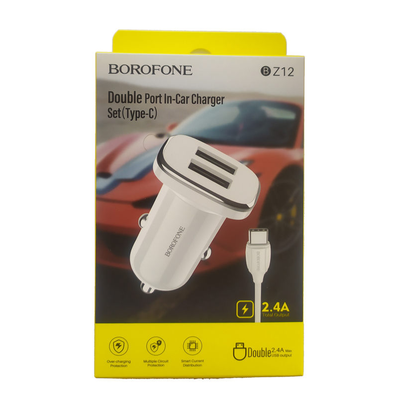 Устройство зарядное автомоб. с кабелем Type-C Borofone BZ12 (Белый)