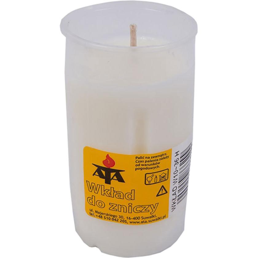 Вкладыш ритуальный артикул W10 представляет собой сменную свечу, которая используется совместно с лампадой. Предназначен для эксплуатации в процессе проведения поминального ритуала. Вкладыш изготовлен из высококачественных и износостойких материалов. Свеча не коптит и не тухнет. Является экологически чистым и абсолютно безопасным для человека продуктом. Время горения данной модели составляет 36 часов.